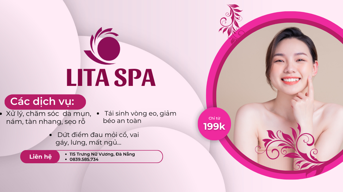 Tại số 26B Tiểu La, Hoà Cường Bắc, Hải Châu, Đà Nẵng. Lita Spa nổi bật là địa chỉ spa và massage chuyên nghiệp, được nhiều khách hàng tin tưởng. Với đội ngũ kỹ thuật viên chuyên môn cao, Lita Spa sẽ mang lại sự hài lòng tối đa thông qua các dịch vụ chăm sóc sức khỏe và sắc đẹp. Không gian spa mát mẻ, yên tĩnh giúp khách hàng thư giãn và tái tạo năng lượng. Đặc biệt, tại Lita Spa, bạn sẽ được tư vấn kỹ lưỡng về tình trạng da và các phương pháp chăm sóc da chuyên sâu, hỗ trợ hiệu quả quá trình phục hồi và tái tạo da.